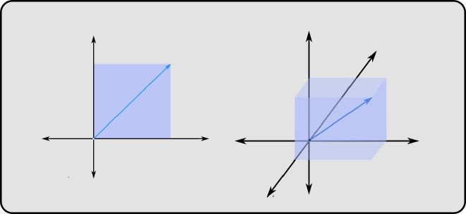 when multiplied by singular matrices however, the determinant becomes zero. this happens when there is a linear dependency between rows or columns of a matrix. so if there are \(n\) columns, one of more of those can be obtained by a linear combination of other columns. this means the columns don’t actually span the space with \(n\) dimensions, and the hyper cuboid formed is collapsed to a subspace which is spanned by the columns. the matrix in this case is said to have rank deficiency.
